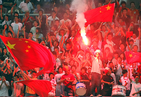 ![]() China's fans celebrate after their team scored against New Zealand during their Group D soccer match at the 2007 FIFA Women's World Cup in Tianjin September 20, 2007. China advanced to quarterfinals with a 2-0 win over New Zealand. [Reuters] |