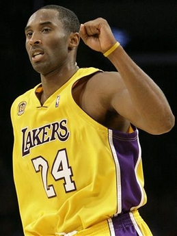 Los Angeles Lakers Kobe Bryant celebrates after teammate Derek Fisher made a three-pointer against the Houston Rockets during the first half of their NBA basketball game in Los Angeles, California October 30, 2007. [Agencies]