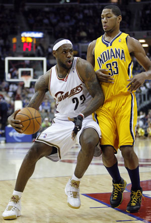 Updated: 2007-12-12 14:18 NEW YORK - LeBron James returned from injury to score 17 points and help the Cleveland Cavaliers end a six-game losing streak on Tuesday with a 118-105 victory over the Indiana Pacers. James, who played 22 minutes off the bench, missed five games with a sprained left index finger. Cleveland lost all five games. "It felt like we were in a good groove," said James, who wore a protective glove. "Everyone knows each other. We know what we like and dislike, so it felt like it did last year when we were playing our best basketball." Larry Hughes also came off the Cleveland bench in his second game back after injury and recorded a season-high 36 points, while Anderson Varejao made his season debut, also off the bench, after ending a contract holdout. Mike Dunleavy led the Pacers with 23 points while Jermaine O'Neil had 18 and Troy Murphy posted 14 points and 12 rebounds. *Toronto guard T.J. Ford scored 26 points in his side's 100-88 victory over Atlanta but was taken to hospital after being fouled by Atlanta rookie Al Horford. Ford hit his head on the floor when fouled by Horford, which provoked an angry reaction from Toronto coach Sam Mitchell, and was carried off on a stretcher and later taken to hospital. *The Los Angeles Clippers recorded their first win in New Jersey in almost 10 years by beating the Nets 91-82 in a battle of slumping teams. The Clippers had lost eight of their last nine games while the Nets have now lost eight of their last nine home games. *Caron Butler scored 20 points and grabbed 10 rebounds while Roger Mason Jr. scored 17 points as the Washington Wizards overcame Craig Smith's career-high 36 points to beat the Minnesota Timberwolves 102-88. |
