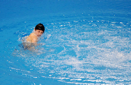 A 12-year-old diver swims to the surface of the pool after his last diving at the 2008 National Diving Championships in Hefei of East China's Anhui Province March 20, 2008. Many young diving hopefuls aged 12 or 13 shined in the Championships. [Xinhua]