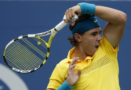 Updated: 2009-09-13 14:50 NEW YORK: It took only 90 seconds and three shanked forehands from Fernando Gonzalez to effectively hand Rafael Nadal a free ticket into the US Open semi-finals on Saturday.