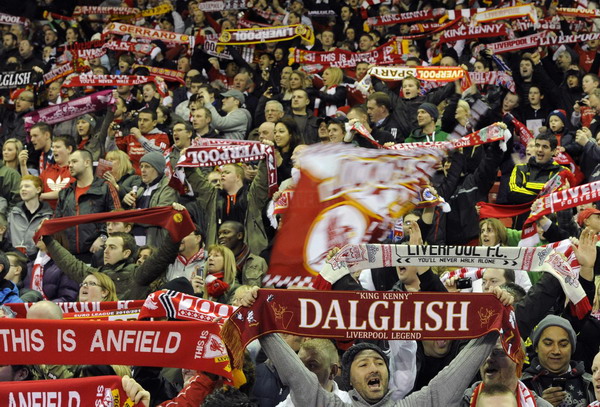 ![]() Liverpool fans sing at the start of their Europa League round of 32, second leg soccer match against Sparta Prague in Liverpool, northern England Feb 24, 2011. [Photo/Agencies]