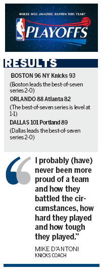Now the sixth-seeded Knicks, who have tested the third-seeded Celtics, must win at least one of two at home to bring the series back to Boston.