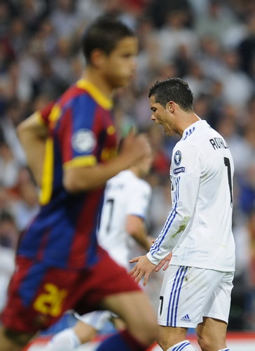 ![]() Real Madrid's Cristiano Ronaldo reacts during their Champions League semi-final first leg soccer match against Barcelona at Santiago Bernabeu stadium in Madrid April 27, 2011. [Photo/Agencies]