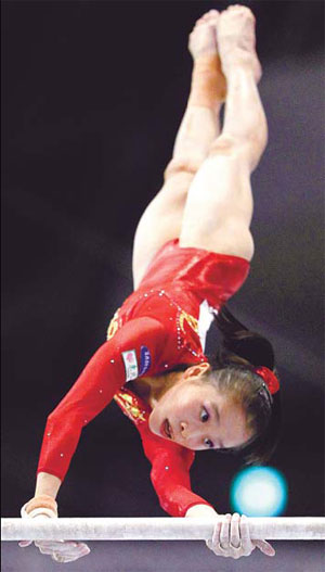 China's Yao Jinnan performs on the uneven bars during the women's team final at the Artistic Gymnastics World Championships in Tokyo, Japan, on Tuesday. The US won the gold medal, followed by Russia. China claimed the bronze. Koji Sasahara / Associated Press |