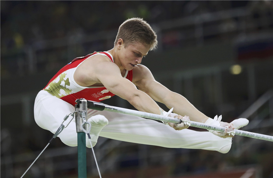 Ivan Stretovich of Russia competes on the horizontal bars during the artistic gymnastics men's team final in Rio de Janeiro, Brazil, on August 8, 2016. [Photo/Agencies]