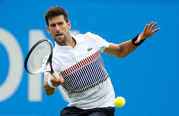 Serbia's Novak Djokovic in action during his quarter final match against USA's Donald Young at the Eastbourne International in Eastbourne, Britain on June 29, 2017. [Photo/Agencies]