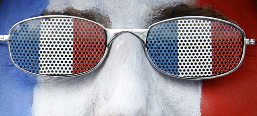 A French fan looks through tri-colored glasses before the Group C Euro 2008 soccer match between France and Italy in Zurich June 17, 2008. [Agencies]