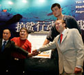 Liu Xiang, Athens Olympics 110 meter hurdles gold medalist, was awarded the title of "Shanghai Meritorious Athlete" Thursday by Shanghai Sports Administration for breaking the record of 110m hurdle in a race in Lausanne last month.