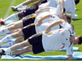 The stadiums are ready, the grass is cut and sleek. The giant sculptures of Bayer aspirin tablets and Adidas soccer shoes, proud German inventions, rise over parks and fields.