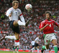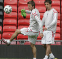 England's David Beckham stretches during a training session at Old Trafford, Manchester May 29, 2006.