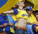 A Brazil fan celebrates in the stands after their Group F World Cup 2006 soccer match against Australia in Munich June 18, 2006.Brazil beat Australia 2-0 in the 2nd Game of Group F. [Reuters]
