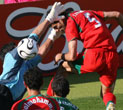 Dutch soccer fans celebrate the victory of their team in the World Cup soccer match against Serbia and Montenegro 1-0 in Leipzig, June 11, 2006.[Reuters]