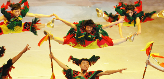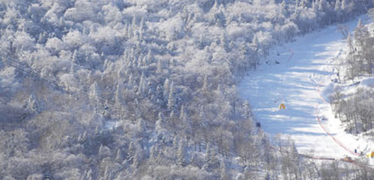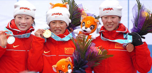 China's Han Xiaopeng flies over the forest near Beidahu Ski Resort during the competition of the men's aerials at the 6th Winter Asian Games February 1, 2007. Han won the gold and teammate Qiu Sen took the silver. [Xinhua]