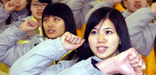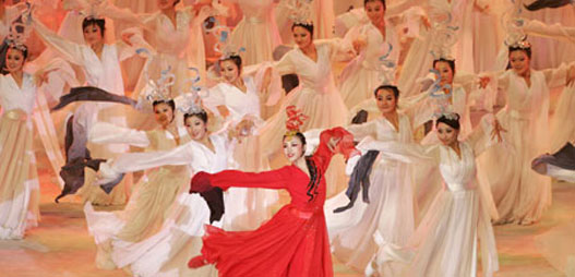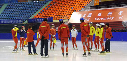 Chinese contingent march on to the stadium led by the country's top figure skater Zhao Hongbo on the opening ceremony of the 6th Asian Winter games in Changchun, in the northeastern province of Jilin January 28, 2007. [Xinhua]
