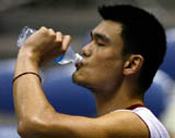 Houston Rockets' Yao Ming of China (foreground) shoots a half-court shot in front of teammates during the 2007 NBA All-Star western conference practice in Las Vegas, February 17, 2007. [Reuters]