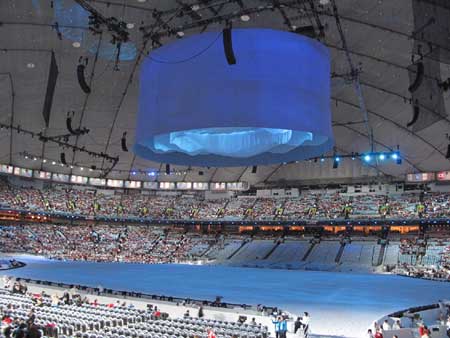 Inside of the BC Place, where the opening ceremony of the Vancouver Winter Olympic Games will be held at 6:00pm, Feb 12 local time in Vancouver. [Photo/Lei Lei]