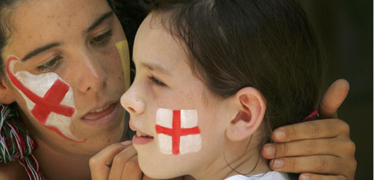 Victoria Beckham (L) and Brooklyn, wife and son of England's David Beckham, watch the second round World Cup 2006 soccer match between England and Ecuador in Stuttgart June 25, 2006. [Reuters]