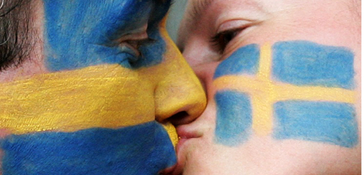 Sweden fans kiss before the Group B World Cup 2006 soccer match between Sweden and Paraguay in Berlin June 15, 2006.[Reuters]