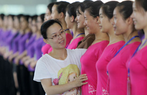 Torch bearer Yu Tianyang salutes the Olympic torch on the city wall during the Olympic torch relay for the Nanjing Youth Olympic Games in Nanjing, Jiangsu province, on Aug 8, 2014. [Photo/Xinhua]