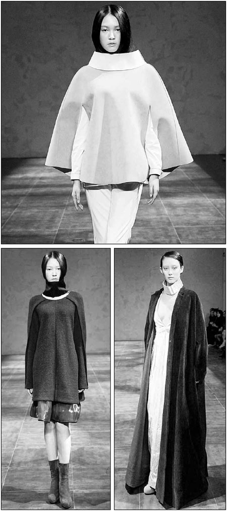 Ricostru's Fall/Winter menswear features nubby sweaters, collarless jackets and long overcoats, over casually un-tucked shirts in icy-gray shades. Photos Provided to China Daily |