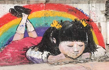Qi Xinghua's latest graffiti works at a renovation base in Yangpu district of Shanghai, make the dilapidated walls revive.