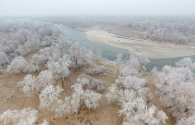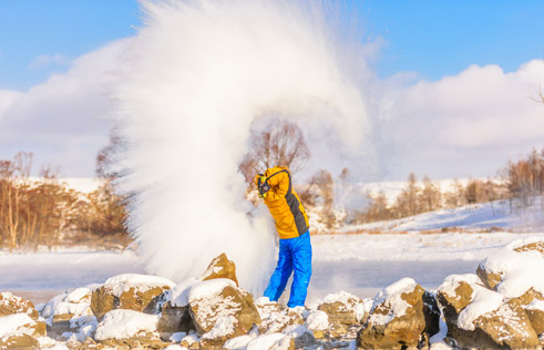 Hot water freezes the moment a Chinese tourist pours it from a pot in Arxan city, North China's Inner Mongolia autonomous region, on Nov 29, 2017. The temperature there has reached -30 C.