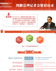[图解总理记者会精彩语录][图解总理记者会十五个关键词][李克强政府工作报告精彩话语集][总理这一年][2014年政府工作报告“强”硬词][16年来总理都回答了哪些问题?]