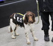 警犬“助阵”两会安保工作:大会堂内细致检查