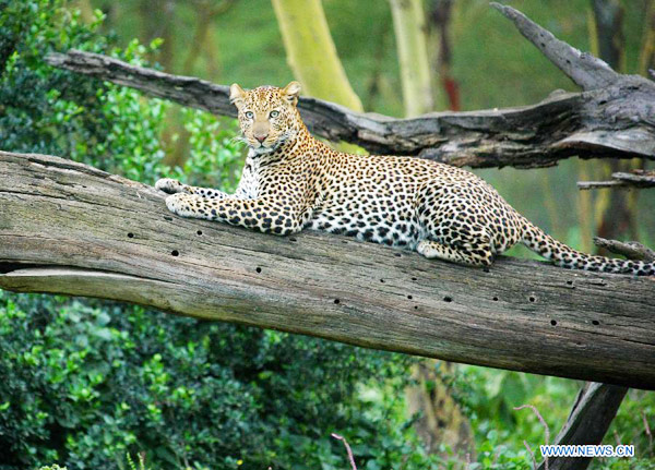 A leopard is seen in Nakuru National Park in Kenya, August 22, 2011. Leopards are seldom to be seen in Kenya. The number of leopards at the Nakuru National Park has increased due to Kenya Wildlife Service's (KWS) effort.[Photo/Xinhua] |