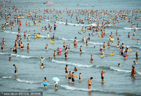 Qingdao citiens choose to flock to the city's No. 1 seaside bathing spot in hot summer.[Photo/CFP]