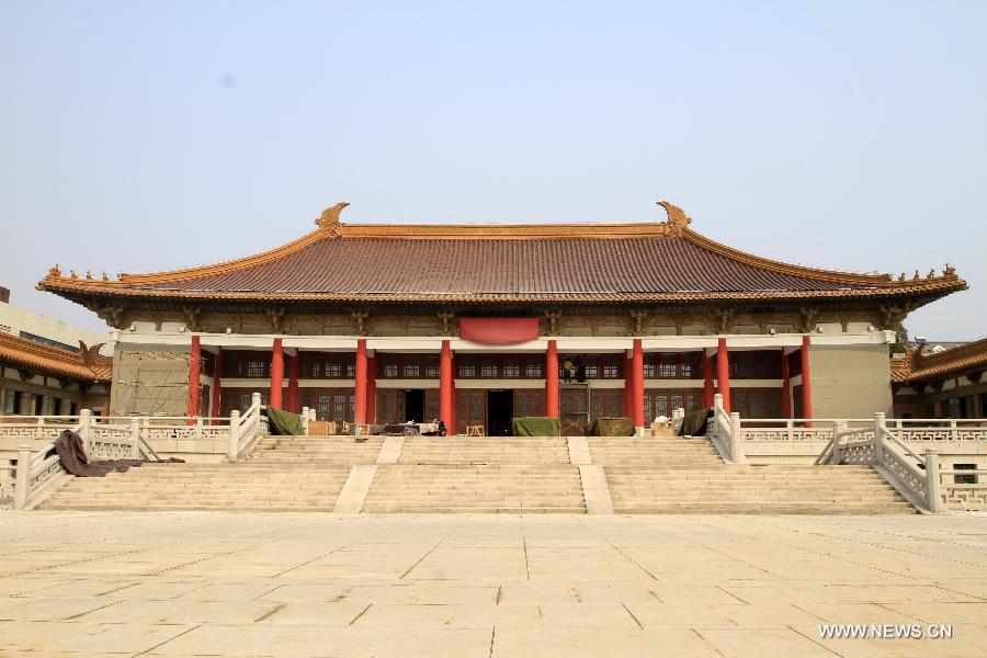 Photo taken on Oct 20, 2013 shows the expanded main hall of Nanjing Museum, in Nanjing, capital of East China's Jiangsu province. The expansion project of Nanjing Museum is about to finish and the new museum will open to public on Nov 6. After expansion, the museum will house six theme halls and display about 50,000 exhibits.[Photo/Xinhua] |