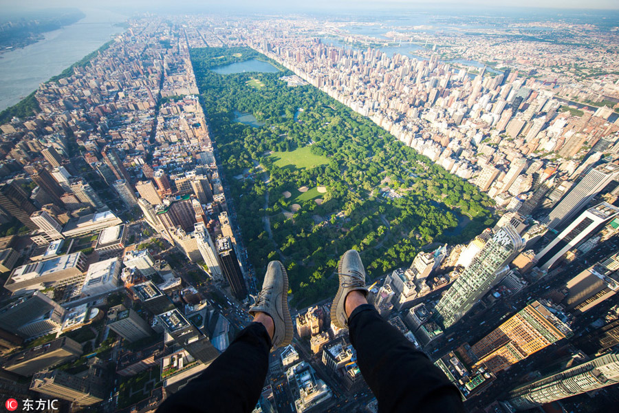 Twenty-one-year-old Londoner Jacob Riglin climbs on top of the tallest rooftops across the world to take pictures of the cities. Here he captures an image of New York City. [Photo/IC]
