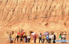 Tourists visit Flaming Mountain in Xinjiang