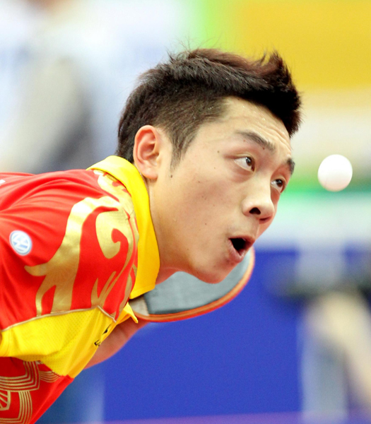5月23日,中国选手张继科在比赛中以3比0战胜法国选手莱贝松。新华社记者 陶希夷 摄