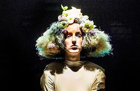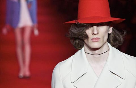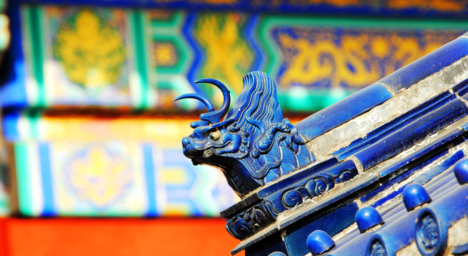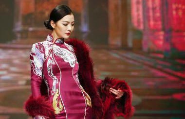 Against a background of giant columns with projected images of pyramids hung dozens of Chinese red lanterns.