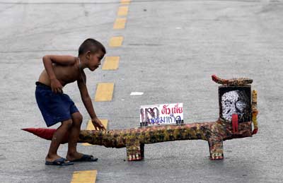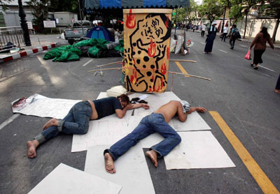 front of the Government House in Bangkok March 22, 2006. Hundreds of protesters