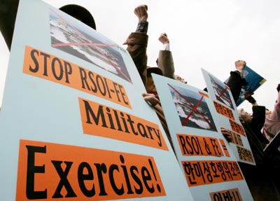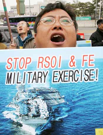 against the joint military exercise between South Korean and U.S. troops in