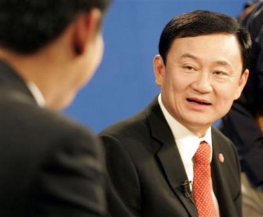 Thailand's Prime Minister Thaksin Shinawatra talks about the political crisis during a talk show at the Channel 11 television station in Bangkok April 3, 2006. [Reuters]