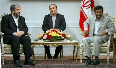 Mahmoud Ahmadinejad, right, meets with former Palestinian Hamas leader