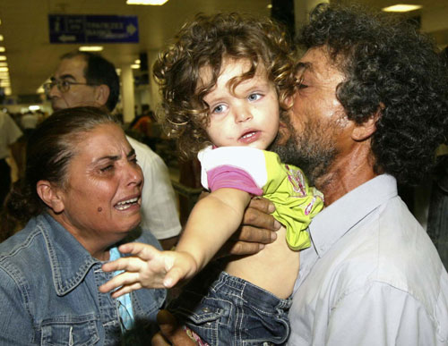 evacuated from Lebanon, at Larnaca airport, early July 14, 2006. Cyprus
