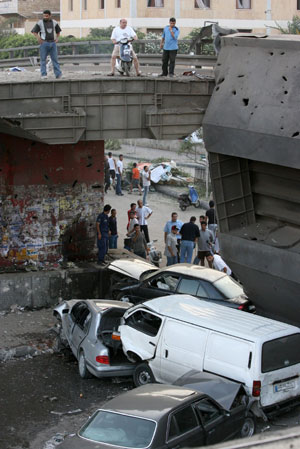 by Israeli air strikes in southern Beirut July 14, 2006. Israeli jets destroyed