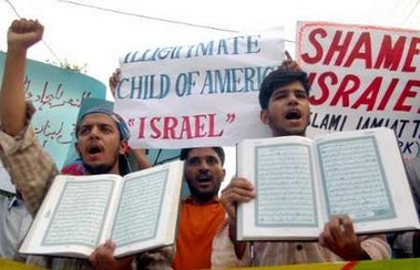 strikes on Lebanon and Gaza, in Lahore August 3, 2006.