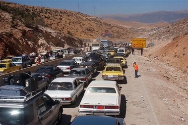 of Lebanese jammed bomb-cratered roads Tuesday for the second day as they
