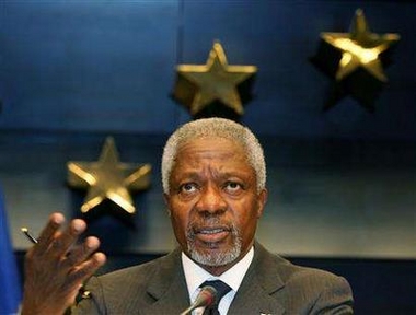 of EU foreign ministers in Brussels August 25, 2006. Annan will discuss