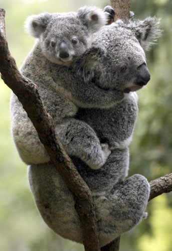 Koala Sabrina and her 10-month-old joey Sapphire, produced by artificial