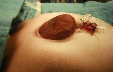Baby with heart outside body has surgery(AP)Updated: 2006-11-23 22:27 MIAMI - Using a piece of Gore-Tex fabric to make their repairs, doctors performed corrective surgery on a baby born with his heart outside his chest, and said Wednesday that the youngster should be able to lead a close-to-normal life.