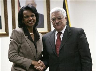 Rice (L) meets Palestinian President Mahmoud Abbas at the Palestinian