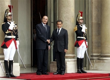 Chirac, ending 12 years in power, transferred the nuclear codes to President Sarkozy in a private meeting that was a high point of the transfer of power. A 21-gun salute signaled the change in leadership after the 74-year-old Chirac took leave with a handshake at the entrance of the ornate Elysee Palace and walked alone to a waiting car. Sarkozy, with a clenched jaw, returned the wave before turning to enter his new home for the next five years. The blunt-talking, pro-market Sarkozy, 52 - the sixth president of the Fifth Republic, founded by Charles de Gaulle in 1958 - won election May 6 on pledges of market reforms and a break with the past. In his first speech as president, a determined Sarkozy noted that he was elected with a mandate for change that he was honor-bound to fulfill. "The people conferred a mandate on me .... I will scrupulously fulfill it," he said, adding that further delays "will be fatal." Chirac handed over the helm of the world's sixth-largest economy after two terms marked by lackluster reforms and tensions in rundown, immigrant-packed housing projects far from the glory of the Elysee Palace. Issues demanding attention include a jobless rate of more than 8 percent and the identity and cohesion of an old nation in a quickly changing world. "Never has immobilism been so dangerous for France," Sarkozy said, promising to rehabilitate the values of "work, effort, merit" and "invent new solutions." Sarkozy said that issues of security, order, authority and results were priorities of his administration. |