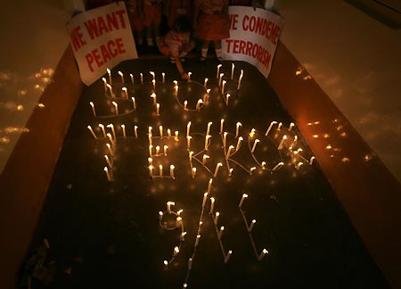 School children light candles to mark the sixth anniversary of the September 11, 2001 attack on the World Trade Center in the United States, in the northeastern Indian city of Siliguri September 11, 2007. Hundreds of school children observed moments of silence on Tuesday to remember the 2,792 people killed at the World Trade Center on Sept. 11 six years ago, when hijacked planes destroyed the 110-story twin towers. [Reuters]